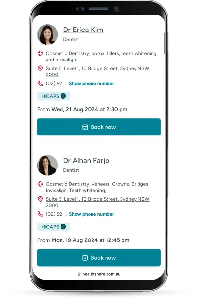 BookNow allows you to reach new patients across two leading health platforms - HealthShare.com.au and HCF's website and app.