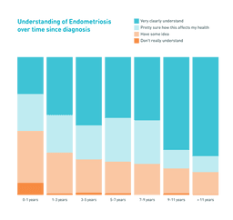 The above graph highlights the increase of understanding from the first year after diagnosis to over 11 years after diagnosis. Even after diagnosis, it takes a long time for patients to truly understand the impact of endometriosis on their health.