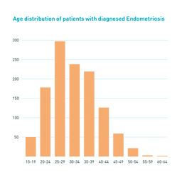 BetterConsult has an extensive range of data on patients presenting to their GP with diagnosed Endometriosis. Endometriosis takes time to diagnose and peaks during the 25- to 29-year-old age range as highlighted in the graph below.
